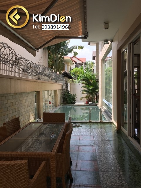 Biệt thự Thảo Điền bán trong Fidico. Diện tích khuôn viên 322m2, có hồ bơi và xây dựng 1 trệt, 2 lầu và áp mái, có tới 8PN. Kiến trúc nhà hiện đại, thông thoáng, thông tầng dạng Duplex. Nhà còn đẹp, chắc chắn và kiên cố.