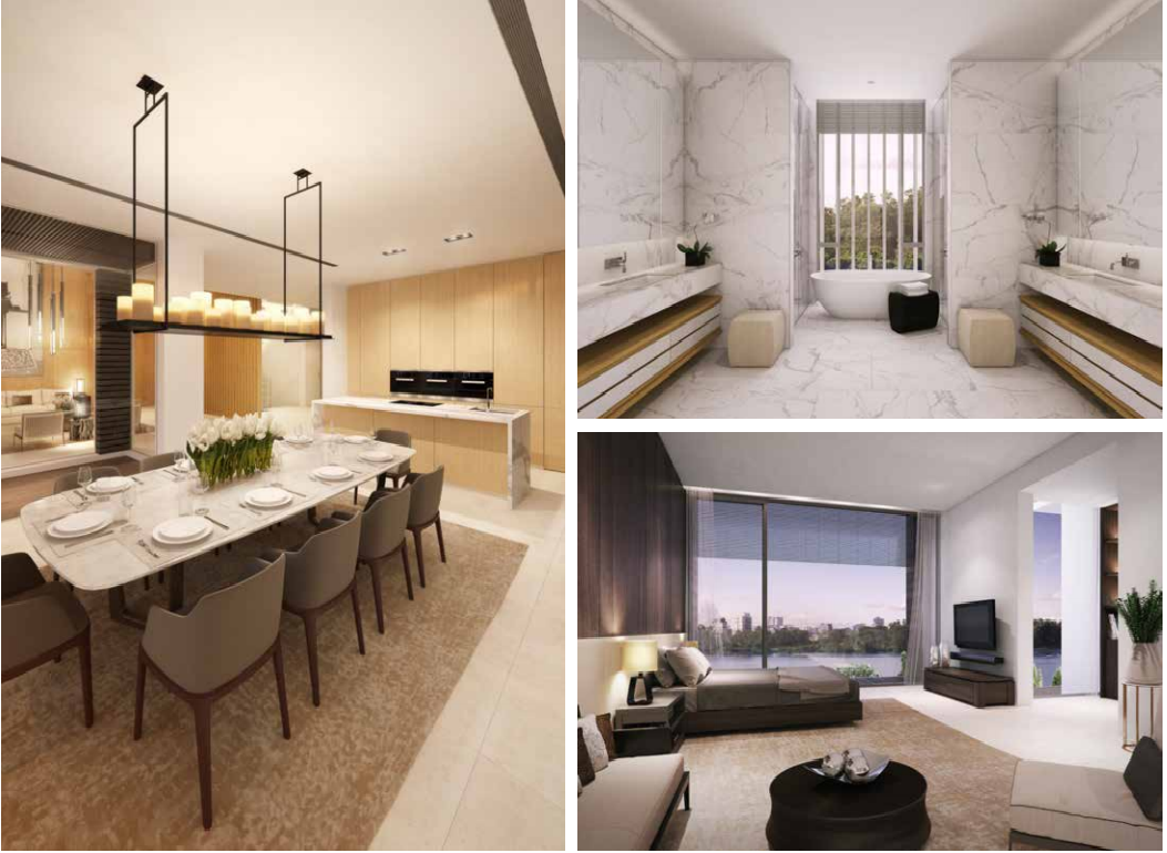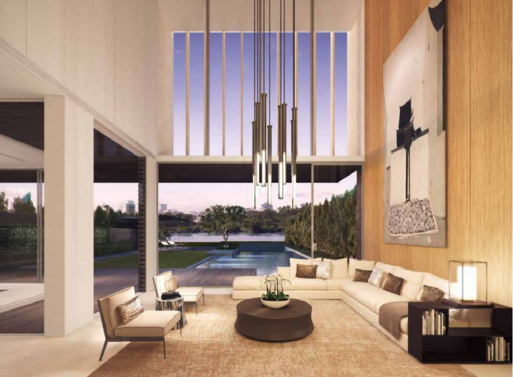 Diện tích xây dựng chung cho toàn khu 359m2 – 588m2. Những căn ven sông và biệt thự hồ bơi sân vườn có chung thiết kế 1 hầm, 1 trệt và 2 lầu, riêng 12 căn biệt thự sân vườn không có hầm mà có gara nổi.