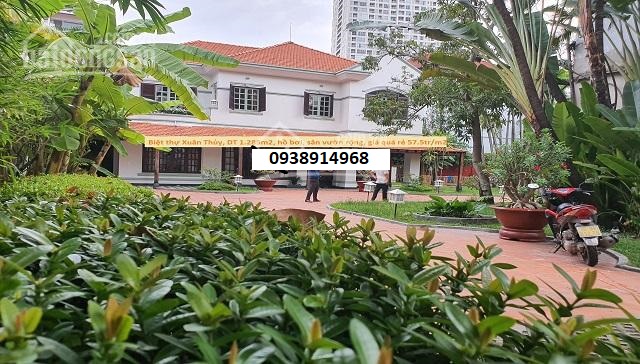 Biệt thự kiến trúc Pháp ở Thảo Điền. Diện tích lớn 1285m2, có biệt, hồ bơi, sân vườn trước nhà rất lớn. Nhà trệt, 1 lầu, 4PN, phòng làm việc, phòng cho người giúp việc đủ công năng sử dụng như dinh thự.