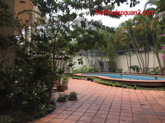 Bán biệt thự thảo điền căn góc 2 mặt tiền. Diện tích khuôn viên 530m2, Hồ bơi sân vườn đẹp, biệt thự Kiểu Pháp có 1 trệt, 1 lầu có 4PN, Phòng cho bảo vệ, phòng cho người giúp việc.