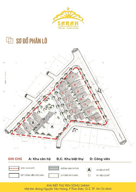 Khu biệt thự Sarah là khu biệt thự an ninh 100% khép khín tại Thảo Điền được xây dựng trên diện tích đất 9.148 m2, được chia làm 4 khu. Khu B & Khu C là khu biệt thự, Khu A là khu căn hộ thấp tầng và Khu D là công viên nội khu.