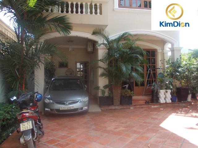 Biệt thư Thảo Điền Quận 2. Diện tích khuôn viên 10 x 21.4 = 214m2 bao gồm nhà biệt thự kiểu Pháp trệt, 1 lầu, 3PN, phòng cho gia nhân và nhà kho, Gara nổi cùng sân vườn bao quanh cây xanh che mát kết hợp vài tiểu cảnh tạo nên sự bình yên cho ngôi nhà.