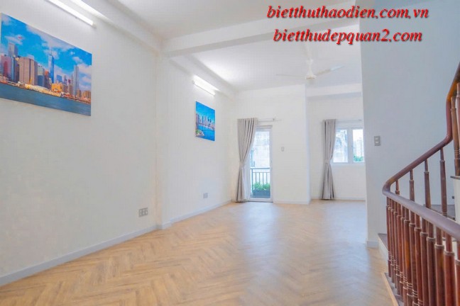 Nhà phố tọa lạc tại mặt tiền đường, nằm trong khu vực phường Thảo Điền, Quận 2, một trong những khu vực phát triển sôi động và thu hút nhiều người nước ngoài sinh sống. Với diện tích 77m² (5,15m x 15m), ngôi nhà thiết kế theo cấu trúc nhà trệt và 3 lầu, mang đến không gian sống tiện nghi và hiện đại.