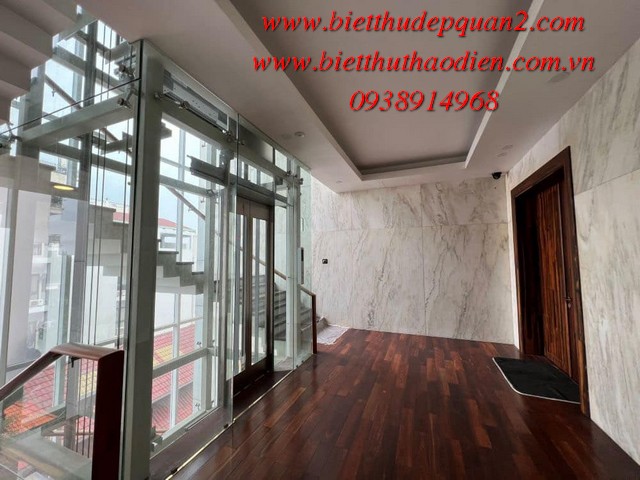 Biệt thự Thảo Điền có tổng cộng 6 phòng ngủ, phục vụ đầy đủ nhu cầu của gia đình. Thêm vào đó, biệt thự còn được trang bị thang máy hiện đại, giúp di chuyển dễ dàng giữa các tầng. Không gian trong nhà được thiết kế mở, tạo nên không gian thoáng đãng và rộng rãi. Đặc biệt, tầng thượng của biệt thự có tầm nhìn tuyệt đẹp ra sông, mang lại cảm giác thư thái và yên bình cho cư dân.