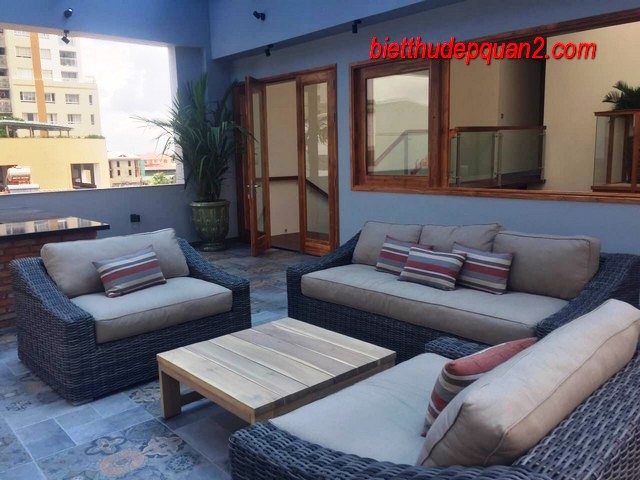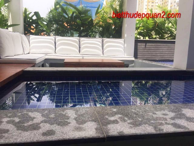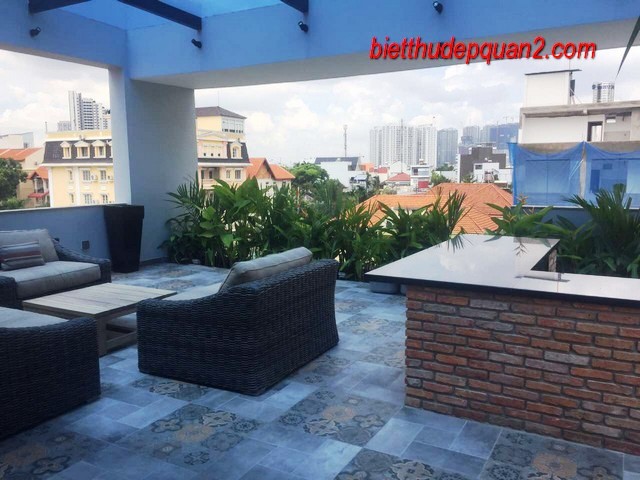 Biệt thự đẹp Thảo Điền Quận 2. Diện tích 8.5 x 27, 300m2, Hồ bơi, sân vườn trên sân thượng, xây mới 100% thiết kế 1 trệt, 2 lầu và sân thượng. Nhà có 4PN sang trọng đang chờ thân chủ lần đầu tiên vào ở.