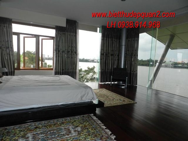 Biệt thự trên sông Thảo Điền. Biệt thự mặt sông Sài Gòn tọa lạc tại phường Thảo Điền Quận 2, vị trí bờ sông hơn 40m, hồ bơi sân vườn đẹp lung linh theo chuẩn phong cách hiện đại do KTS nước ngoài thiết kế và xây dựng.