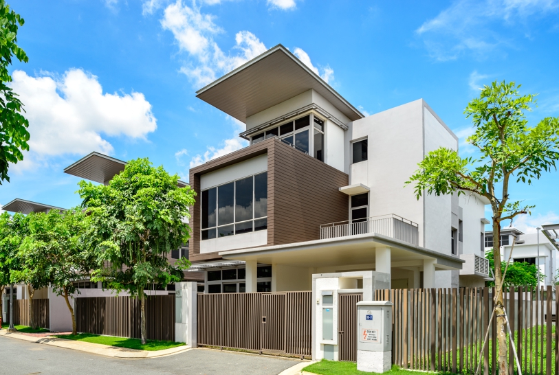 Biệt thự còn thô cho chủ mới tự thiết kế theo ý, trên trục đường chính lõi khu là đường D1B, đường trước nhà là bùng binh rộng - để xoay đầu xe hoặc phục vụ thể thao vui chơi cho con trẻ.