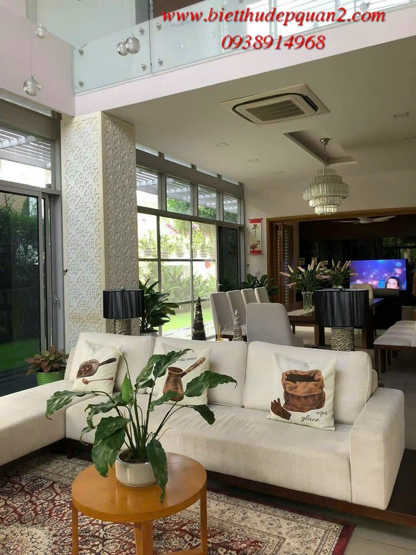 2. Villa 430m2, trệt, 2 lầu, 4 phòng ngủ, được trang bị đầy đủ nội thất cao cấp. Căn nhà này cũng được cho thuê với giá 45 triệu đồng/tháng, không bao gồm phí quản lý.