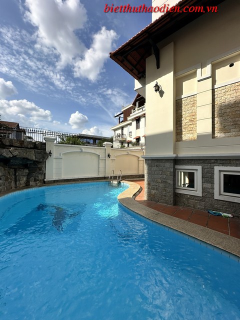 Ngôi villa này được thiết kế với kiến trúc hiện đại và tinh tế, bao gồm một hồ bơi đẹp mắt cùng khu vườn xanh mát, tạo nên không gian sống thư giãn tuyệt vời. Với kết cấu bao gồm hầm, trệt và 2 lầu, cùng với một áp mái tiện nghi, villa có khả năng đáp ứng nhu cầu của gia đình đông thành viên hoặc những người yêu thích không gian rộng rãi.