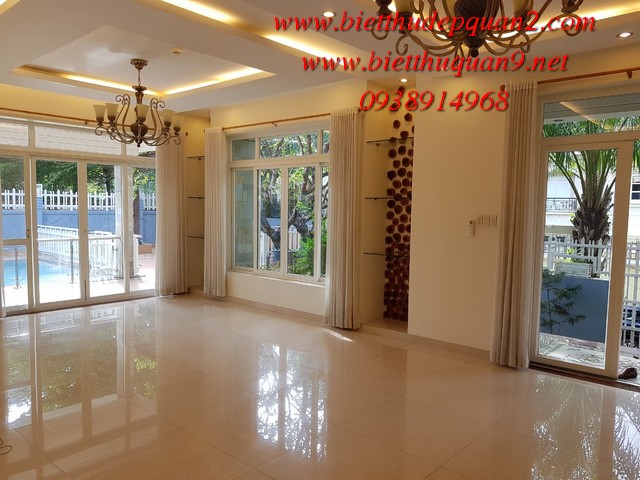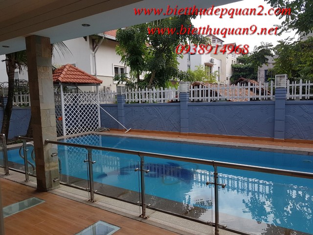 Biệt thự hồ bơi sân vườn diện tích 500m2, hầm, 2 lầu, 4PN, nôi thất cơ bản nhà nội thất cơ bản. Giá cho thuê 6500$/tháng.
