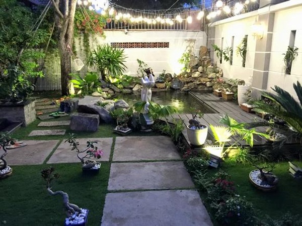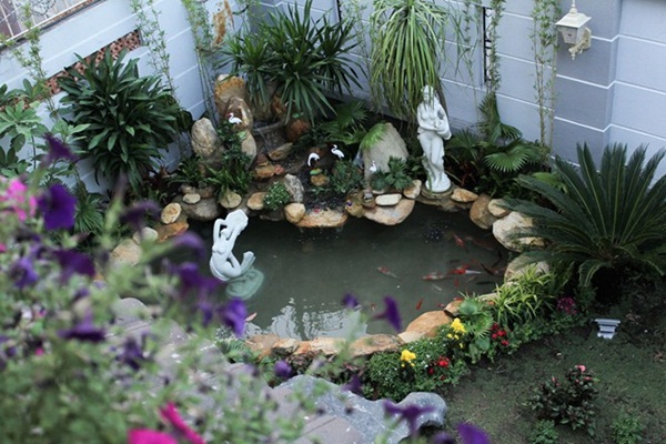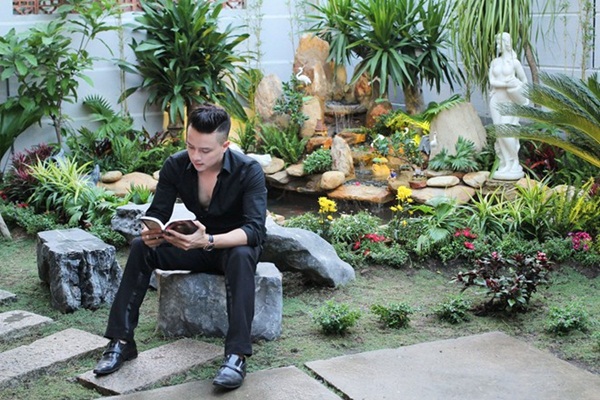 Biệt thự của Nam danh ca nổi tiếng Cao Thái Sơn Không chỉ có vườn rau xanh mướt, bên trong căn biệt thự sang trọng của Anh còn có cả ao cá và giàn hoa nở rực rỡ trước sân vườn trước nhà.