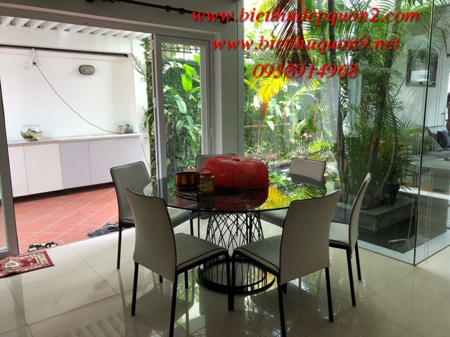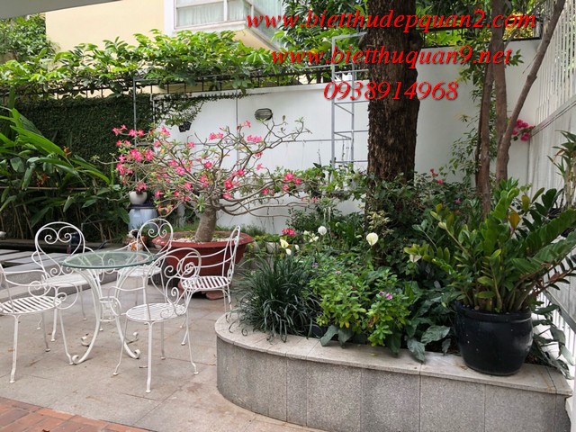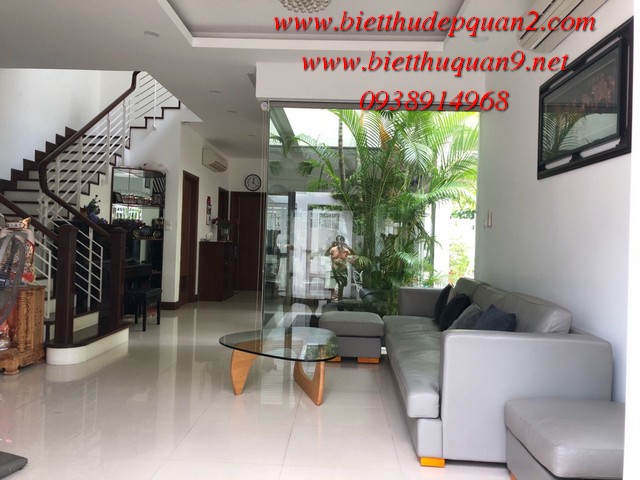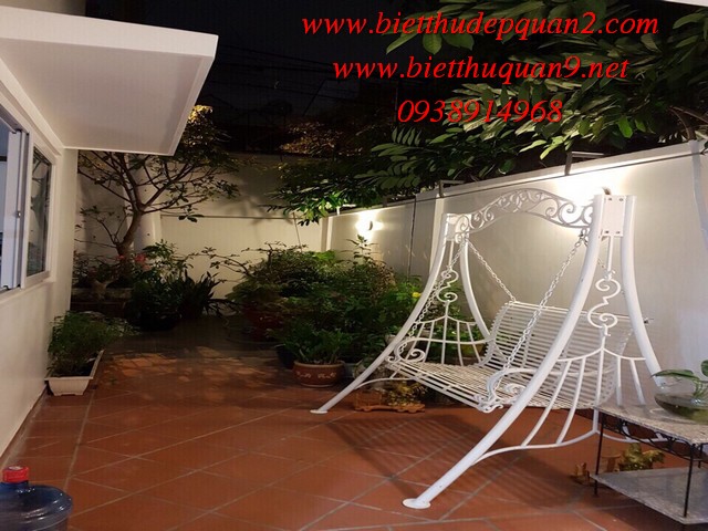 Biệt thự đường Trần Não Quận 2. Diện tích 208m2 (9 x23), sân vườn, trệt, 2 lầu, 4PN, phòng ngủ tầng trệt cho người già và có phòng giờ gia tên. Nhà kiểu hiện đại, đẹp, nội thất sang trọng, có sân vườn đẹp tạo mảng xanh tươi tô điểm thêm khoảng xanh cho ngôi nhà, mua vào ở ngay.