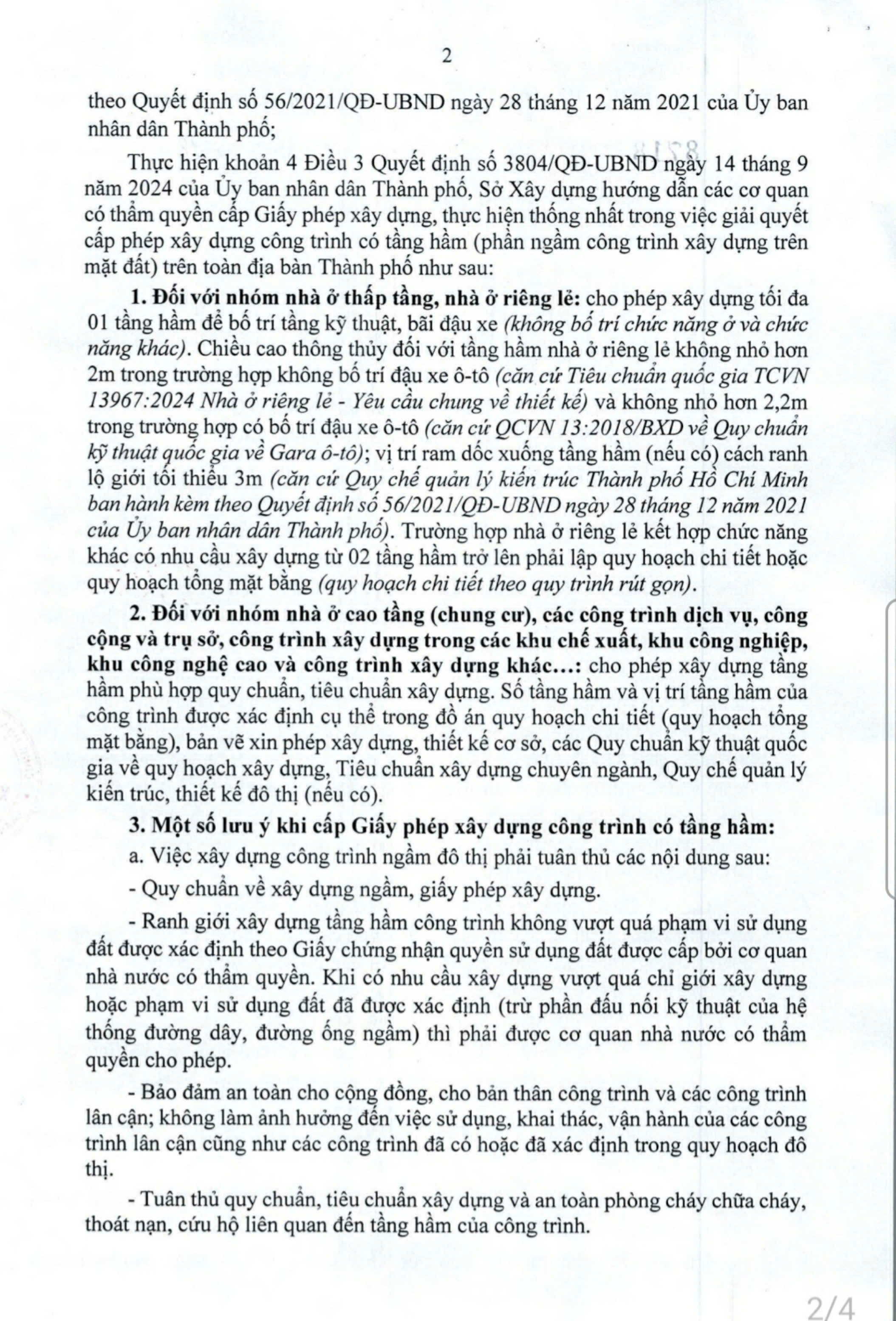 Ngày 18 tháng 09 năm 2024 sở xây dựng HCM ban hành văn bản số 8718/SXD-CPXD về việc cấp GIẤY PHÉP xây dựng công trình có hầm trên địa bàn TP. Hồ Chí Minh. Văn bản có nội dung như sau:
